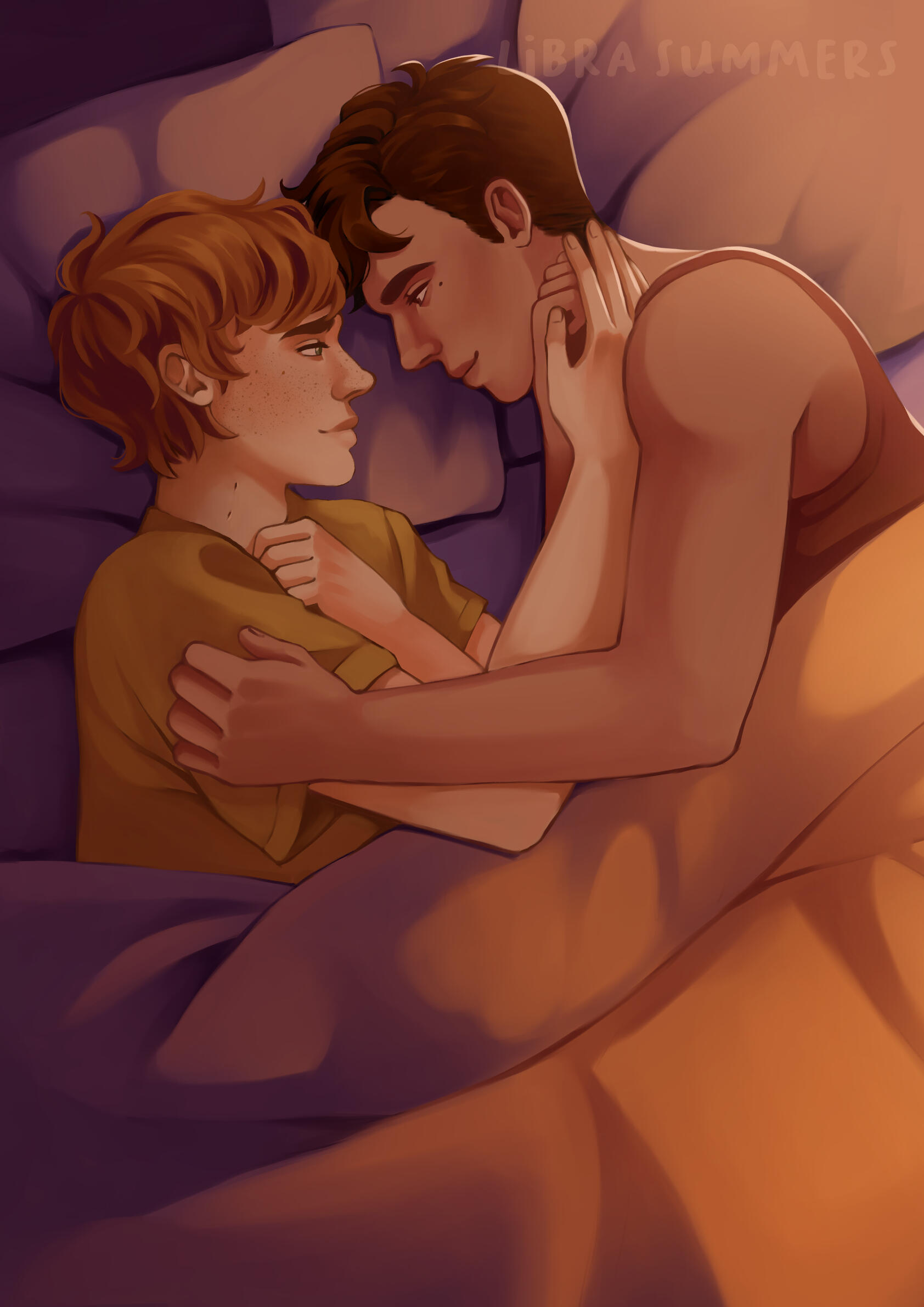 Hi, I'm Libra Summers! I'm a freelance illustrator and software engineer from Germany. I love warm and vibrant colors and drawing fanart for my favorite queer books. I'm currently looking for freelance work in publishing and other commercial projects.